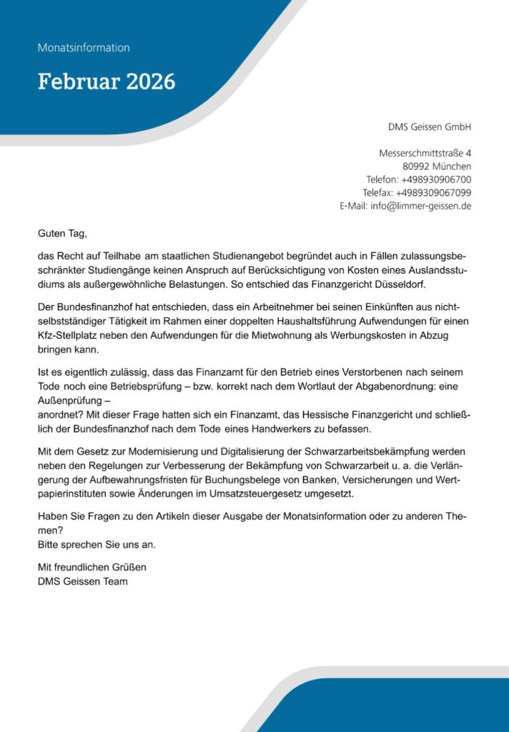 – Steuerliche Neuregelungen ab dem 01.01.2020
